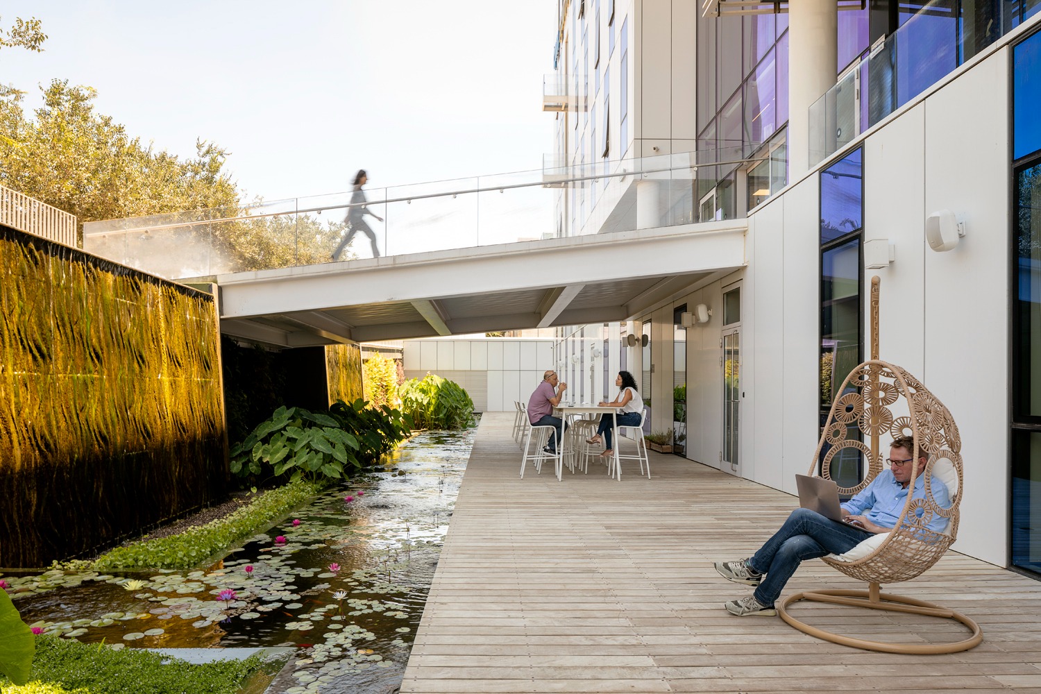 בניין בתכנון אדריכלי מרהיב, חדשני ואלגנטי, ובמרכזו אטריום מרשים, מוקף קירות מסך מזכוכית, המתנשאים לגובה ומכניסים אל תוך המשרדים את נופיו הירוקים של היער הסמוך בשותפות עם חברת ויתניה